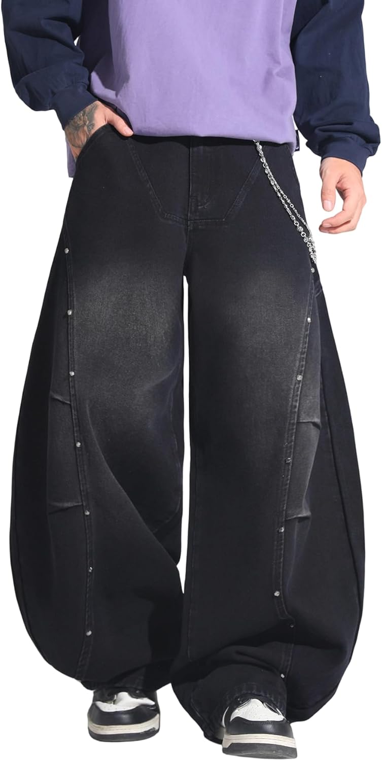 Elevate your streetwear game with the DFGIGT Hip Hop Baggy Jeans for Men. These stylish wide-leg jeans are the ultimate combination of comfort and trend, making them a must-have for any fashion-forward individual. The loose fit is specifically designed to provide maximum freedom of movement, making them perfect for skaters and anyone on the go. Inspired by the iconic Y2K aesthetic, these jeans bring a nostalgic flair to your wardrobe while remaining versatile enough to pair with various outfits. Whether you choose to wear them with graphic tees, oversized hoodies, or casual jackets, these jeans will effortlessly elevate your look. With an extra-large, super oversized design, they offer a relaxed fit that adds to their appeal. You can enjoy a laid-back style that feels as good as it looks, whether you're hitting the skate park or just hanging out with friends. Crafted for extreme motion, these jeans ensure that you stay comfortable and stylish all day long. Make a statement and embrace the vibrant spirit of streetwear with the DFGIGT Hip Hop Baggy Jeans, your new go-to for casual, fashionable attire!
