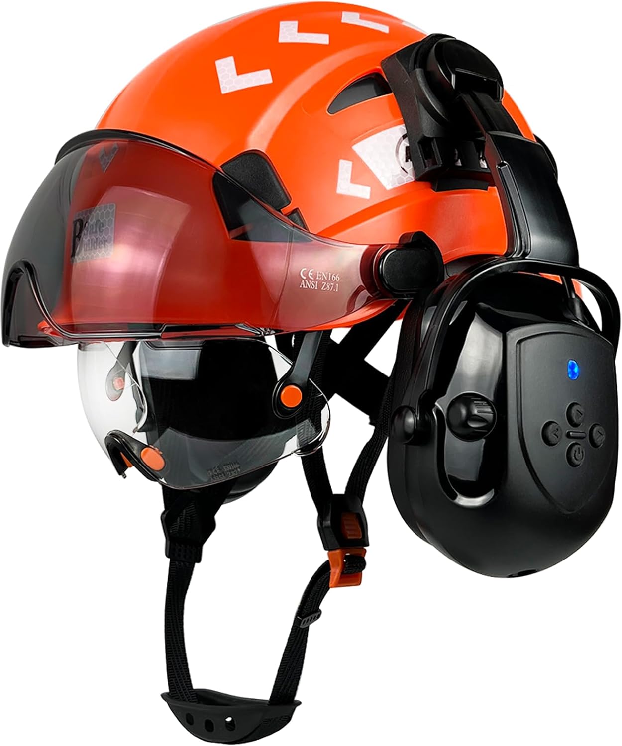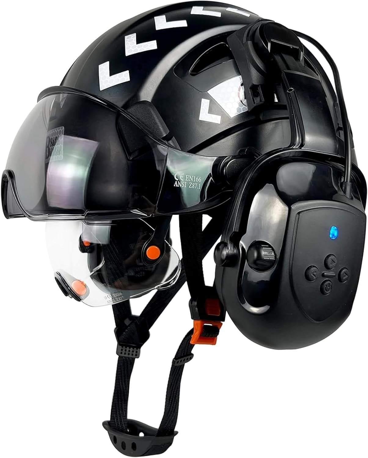 Safety Helmet With Visor and Bluetooth Ear Muffs