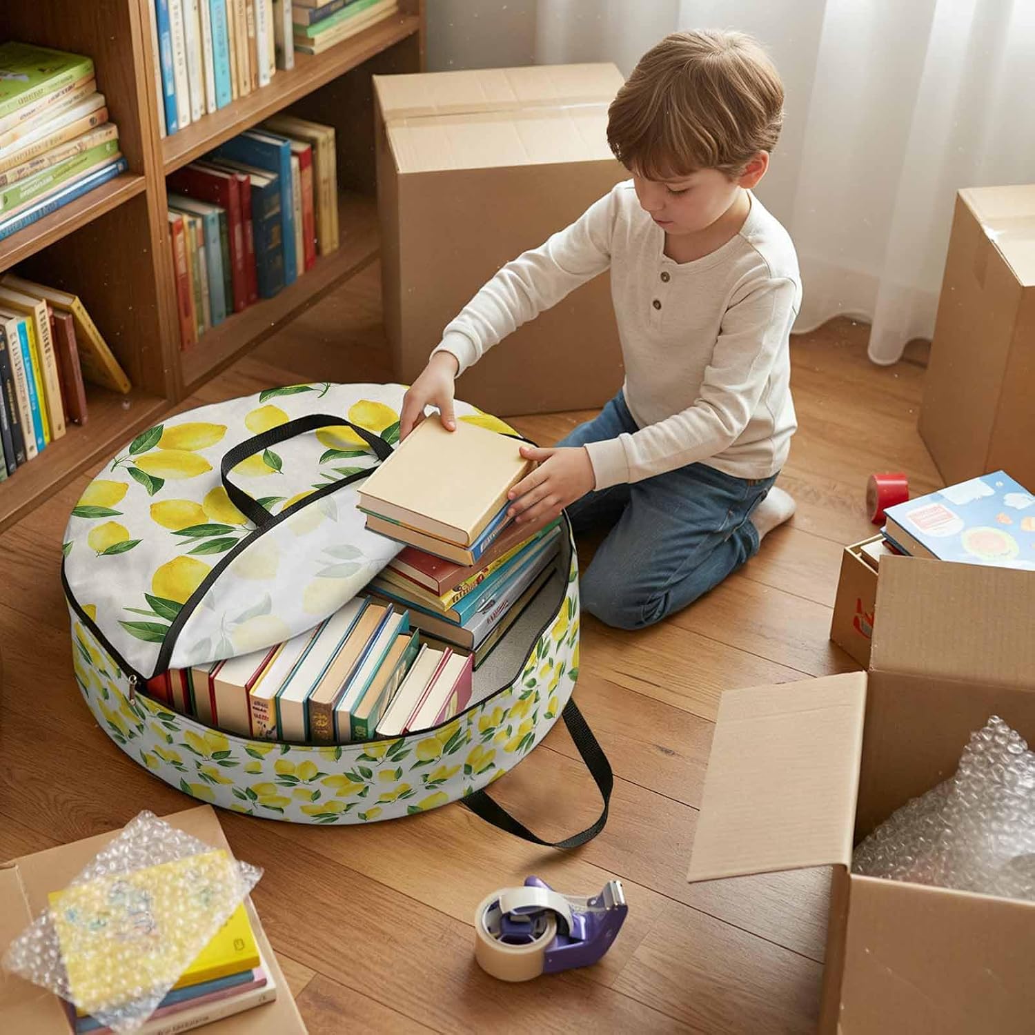 Durable Round Storage Bag – Your All-in-One Organization SolutionThoughtful & User-Friendly DesignSmooth-Sealing Zipper – Glides effortlessly and locks securely to prevent spills or lost items.Reinforced Dual Carry Straps – Ergonomically designed for comfortable grip, excellent weight support, and easy hanging.Label Card Slot – Quickly identify contents with a labeled card for fast, hassle-free retrieval.Multi-Scene Ready – Organize Anything, AnywhereFrom home to garage, travel to moving day—this bag does it all:Holiday & Seasonal: Perfect for Christmas wreaths, garlands, ornaments, and decorations.Moving & Home Storage: Replace bulky boxes for clothes, blankets, pillows, and miscellaneous items.Garage & Utility: Keep tools, car accessories, sports gear neatly stored and protected.Camping & Travel: An extra organizer for outdoor trips or luggage compartmentalizing.Daily Use: Ideal for toys, quilts, out-of-season apparel, and more.Multiple Sizes AvailableWhether you need to store small craft supplies or large comforters, we offer a range of sizes to fit your space and capacity requirements—all featuring compact portability and superior sealability.Tackle clutter with confidence using our high-performance Round Storage Bag, crafted from rugged polyester fabric designed for lasting protection. The tear-resistant material withstands scratches and daily wear while effectively shielding contents from dust—keeping holiday decorations, seasonal clothing, blankets, and valuables clean and intact year after year.