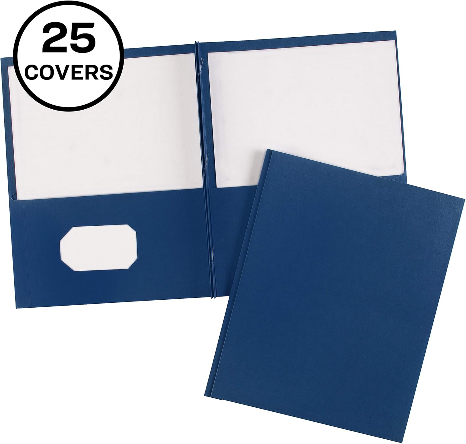 Easily organize your documents and create professional-looking folders with Avery Two Pocket Folders with Fasteners. For easy page viewing, the 3 sturdy metal prong fasteners are designed to hold, secure, and display 3-hole punched documents. Whether you're organizing school folders for the upcoming semester, arranging a presentation folder for a trade show, or creating an art portfolio folder for your latest masterpieces, these 3 prong folders with pockets can help organize and display your work. Load and unload documents at ease as each pocket corner includes built-in open side notches designed for easier access to your pages. Adding a professional touch to your pocket folders can be as simple as having a stack of business cards. For easy folder personalization, the die cut card slot located on the front inside pocket allows you to insert your own business card. Customize your memorable first-impression as these paper folders also allow you to write on or add a label to its cover. With a capacity of 70 sheets of paper, the spacious document folder can hold up to 10 sheets of paper in each pocket and up to 50 sheets of 3-hole punched paper within the 3-prong fastener. The case of 5 boxes includes 125 dark blue folders.