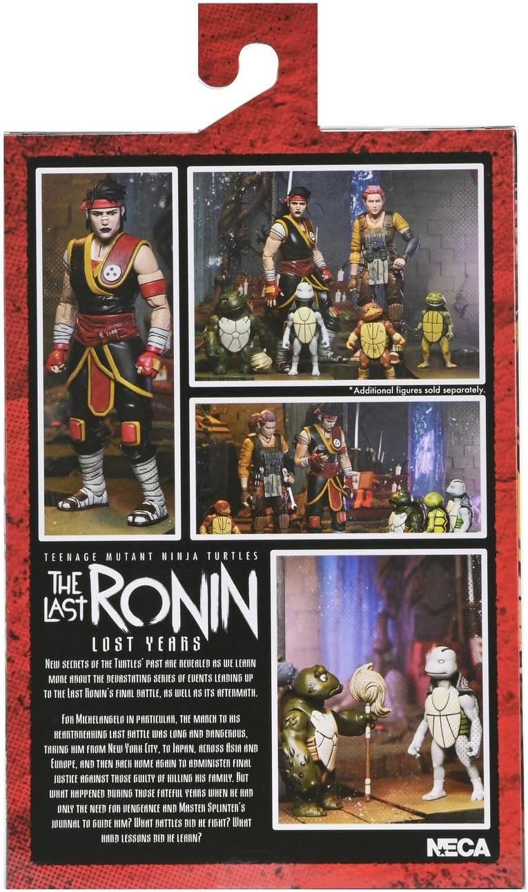 From the Teenage Mutant Ninja Turtles comic series, 'The Last Ronin The Lost Years' unfolds more secrets from the Turtles' past. Ultimate Casey Marie, in her sensei attire, is accompanied by baby Odyn and baby Uno. These meticulously detailed, articulated 7-inch scale NECA action figures boast new sculpts. Included accessories are a mop for Odyn and extra hands, candles for Casey Marie to honor her fallen family. Packaged collector-friendly with original art by 'The Last Ronin' artist Ben Bishop.